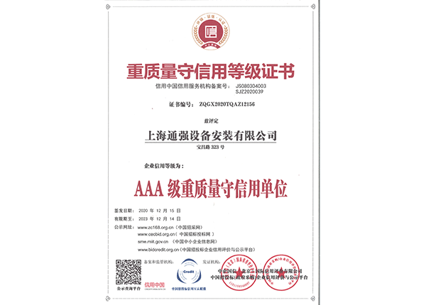 上海通強(qiáng)設(shè)備安裝有限公司注冊(cè)資金2000萬(wàn)元,資產(chǎn)總量為100000萬(wàn)元的專業(yè)設(shè)備安裝公司,公司專業(yè)從事工業(yè)與民用建筑的設(shè)備安裝、非標(biāo)設(shè)備的制作、鋼結(jié)構(gòu)制作安裝、中央空調(diào)系統(tǒng)的安裝,水電及管道的安裝。經(jīng)過(guò)20多年艱苦創(chuàng)業(yè)現(xiàn)已成為一個(gè)具有國(guó)家二級(jí)安裝資質(zhì),獲得上海市“重合同,守信用”的施工單位。